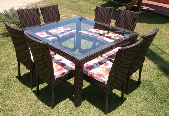 Conjunto Metalom Mesa com 8 Cadeiras com Saia