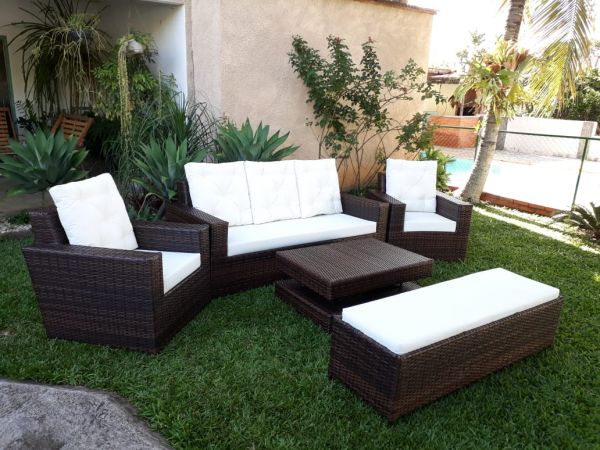 Conjunto Dubay com Mesa de Centro e Puffs