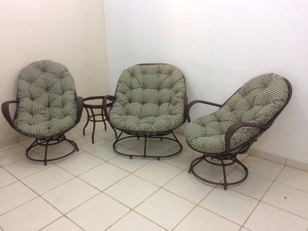 Sofá Modelo Giratório E 2 Poltronas Giratórias Com Almofada